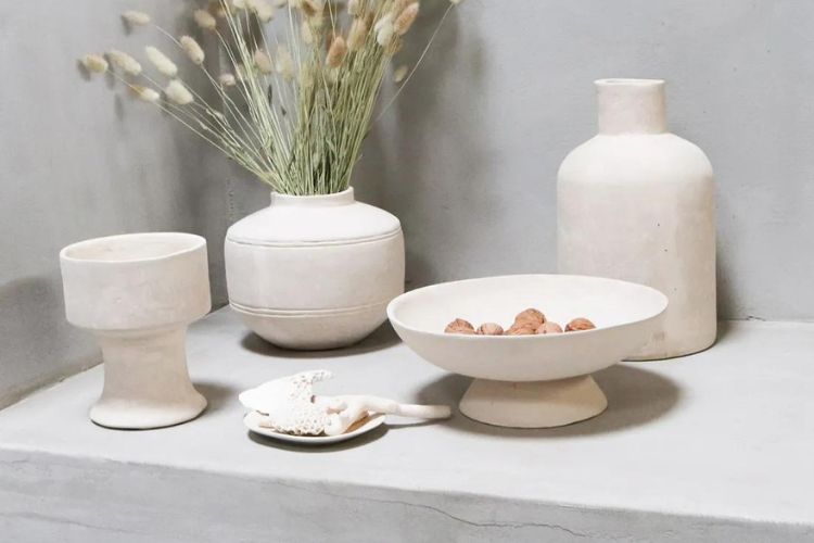 Te presentamos este precioso jarrón de color arena realizado de una manera ecológica. Para su fabricación se utilizan trozos de papel de periódicos viejos y tiza en polvo. La masa resultante se compacta con pegamento y después de diferentes procesos se convierte en el precioso jarrón que ves.
