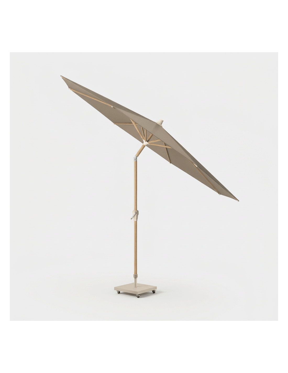 La Sombrilla Riva Teak Look Ø250 Taupe PLATINUM® es una sombrilla práctica y elegante diseñada para proporcionar sombra y confort en espacios exteriores.