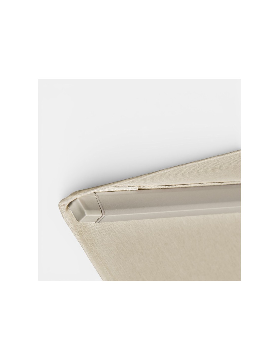El tejido poliéster de 220 g/m² en color Ivory destaca por su resistencia, estabilidad del color y protección solar eficaz frente a los rayos UV.