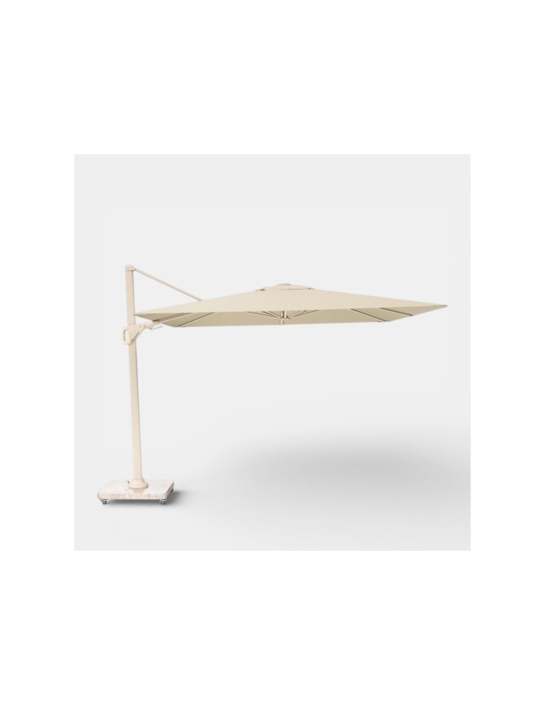 El mástil y la estructura están fabricados en aluminio fundido y lacado, lo que garantiza ligereza, estabilidad y resistencia total a la intemperie.