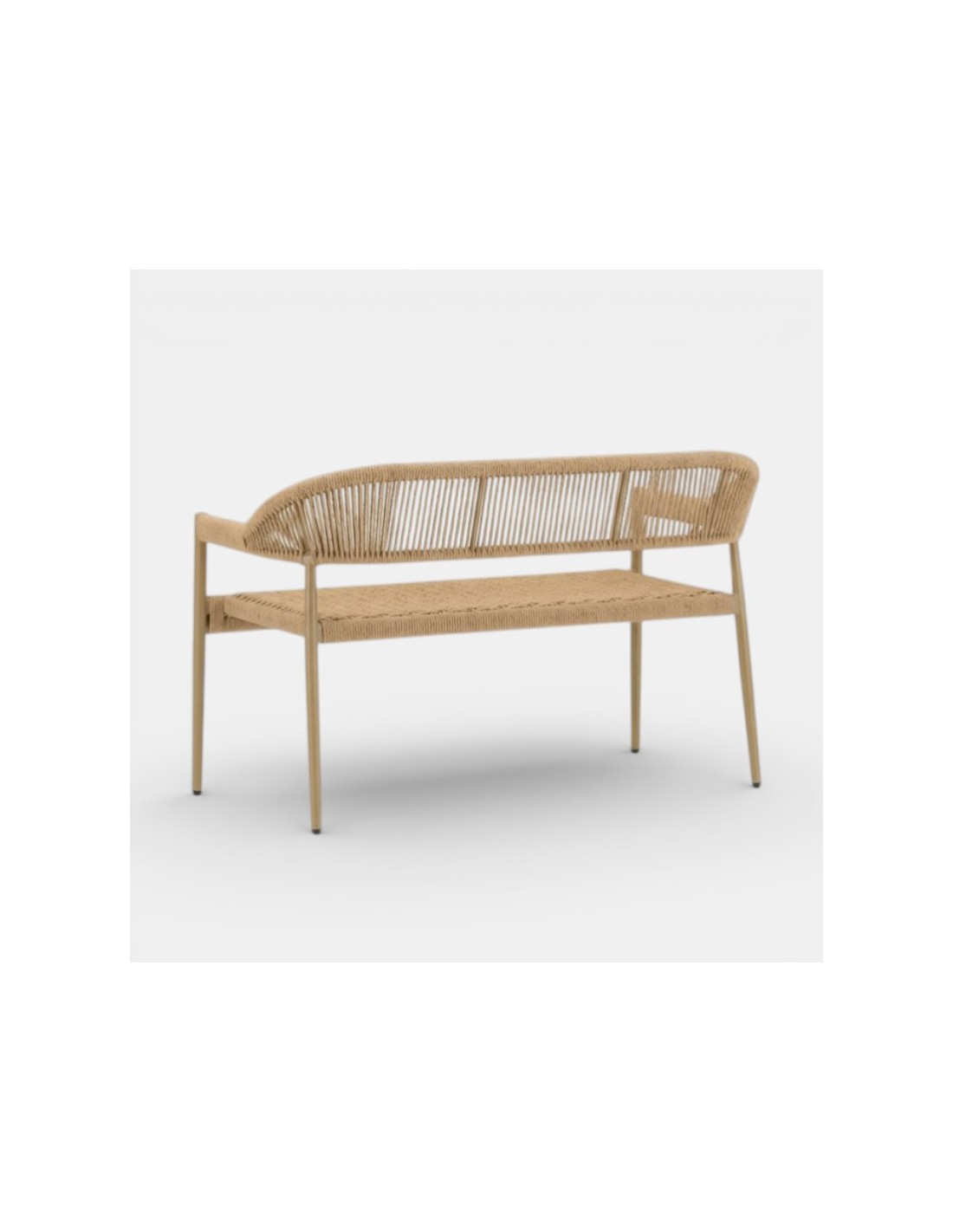 El banco LOMBOK destaca por su diseño moderno y su estética natural, combinando materiales resistentes con un estilo cálido que encaja perfectamente en cualquier ambiente exterior o interior.