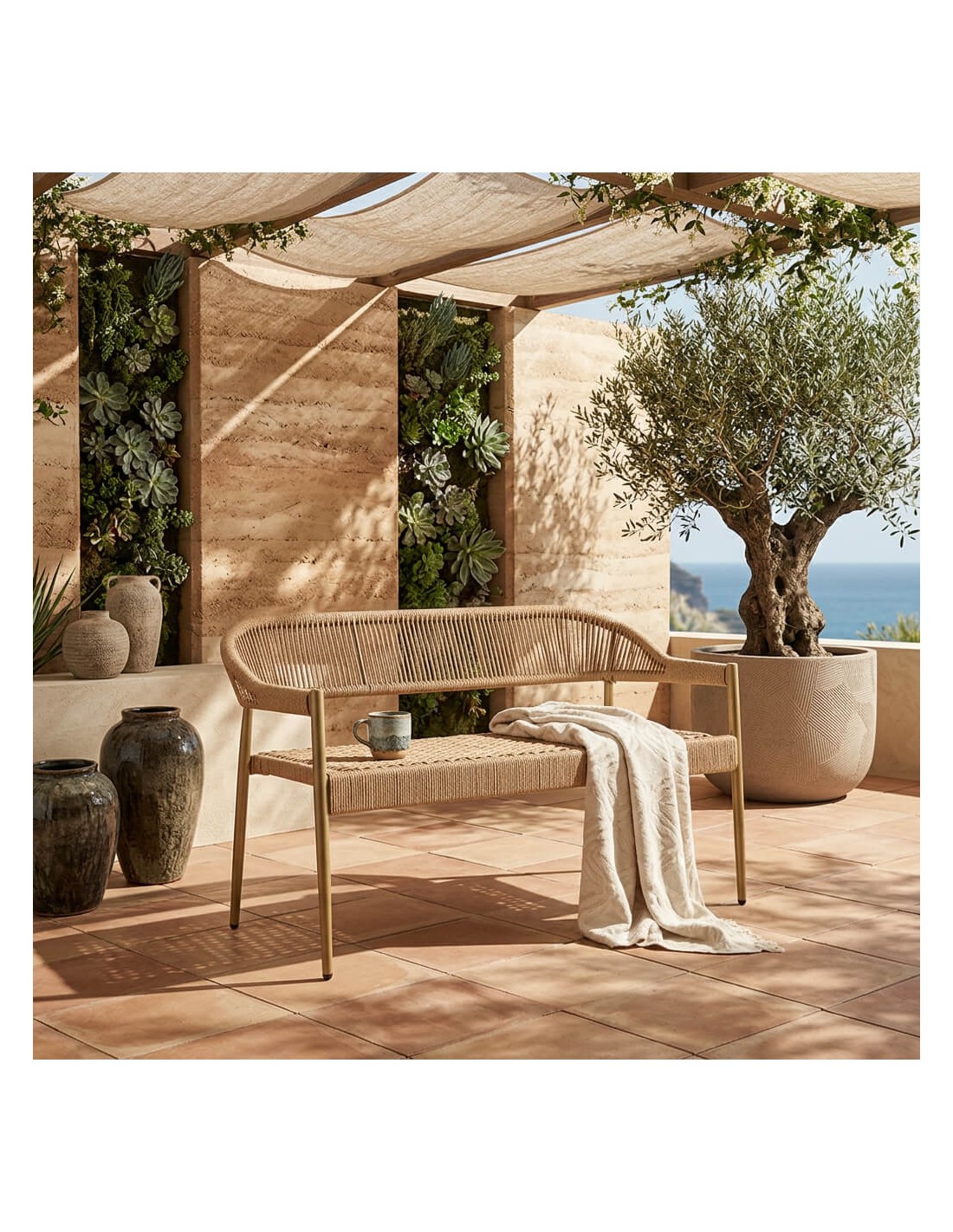 Gracias a sus proporciones equilibradas, el banco ZAURI es ideal para crear zonas de descanso en terrazas, jardines, porches o espacios chill out, combinando perfectamente con mesas auxiliares o conjuntos de exterior.