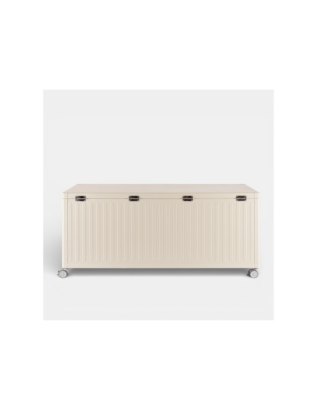 Además de su función de almacenaje, su estructura robusta permite utilizarlo como banco auxiliar para exterior.