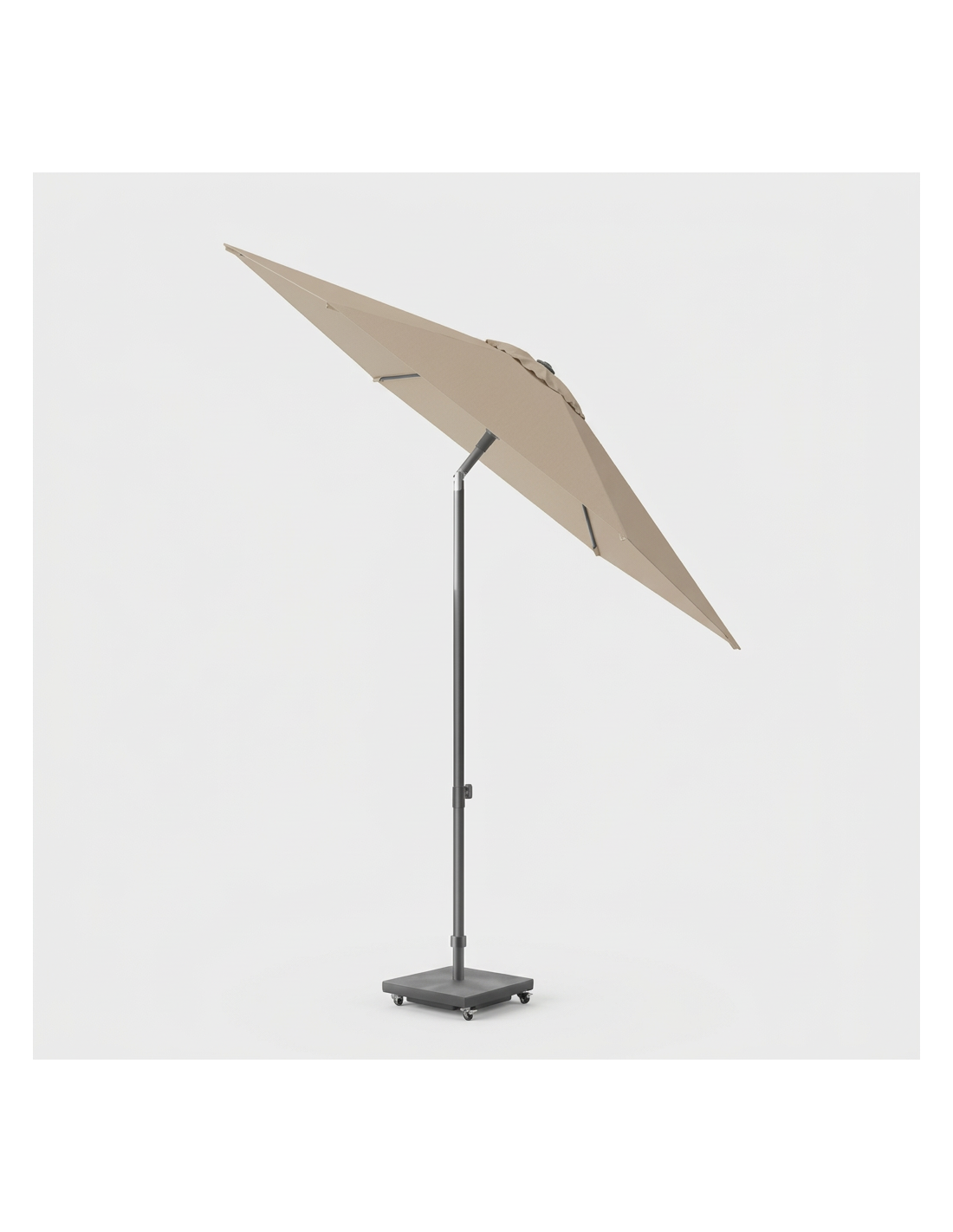 La sombrilla Lisboa de Platinum color Taupe/Antracita, es la opción perfecta para disfrutar del exterior con total comodidad. Su diseño con mástil central permite integrarla fácilmente en cualquier espacio, proporcionando una sombra eficaz y ajustable según la posición del sol.