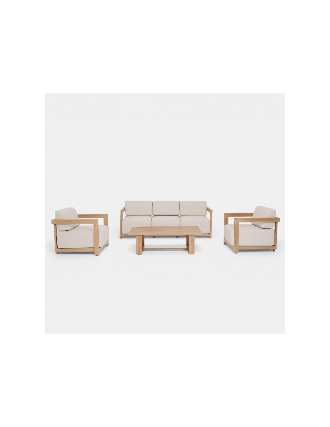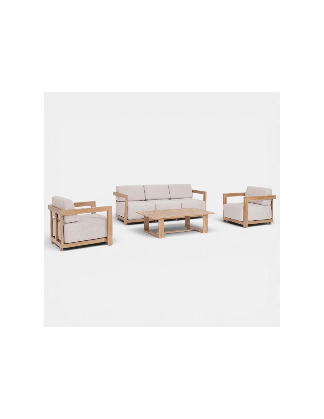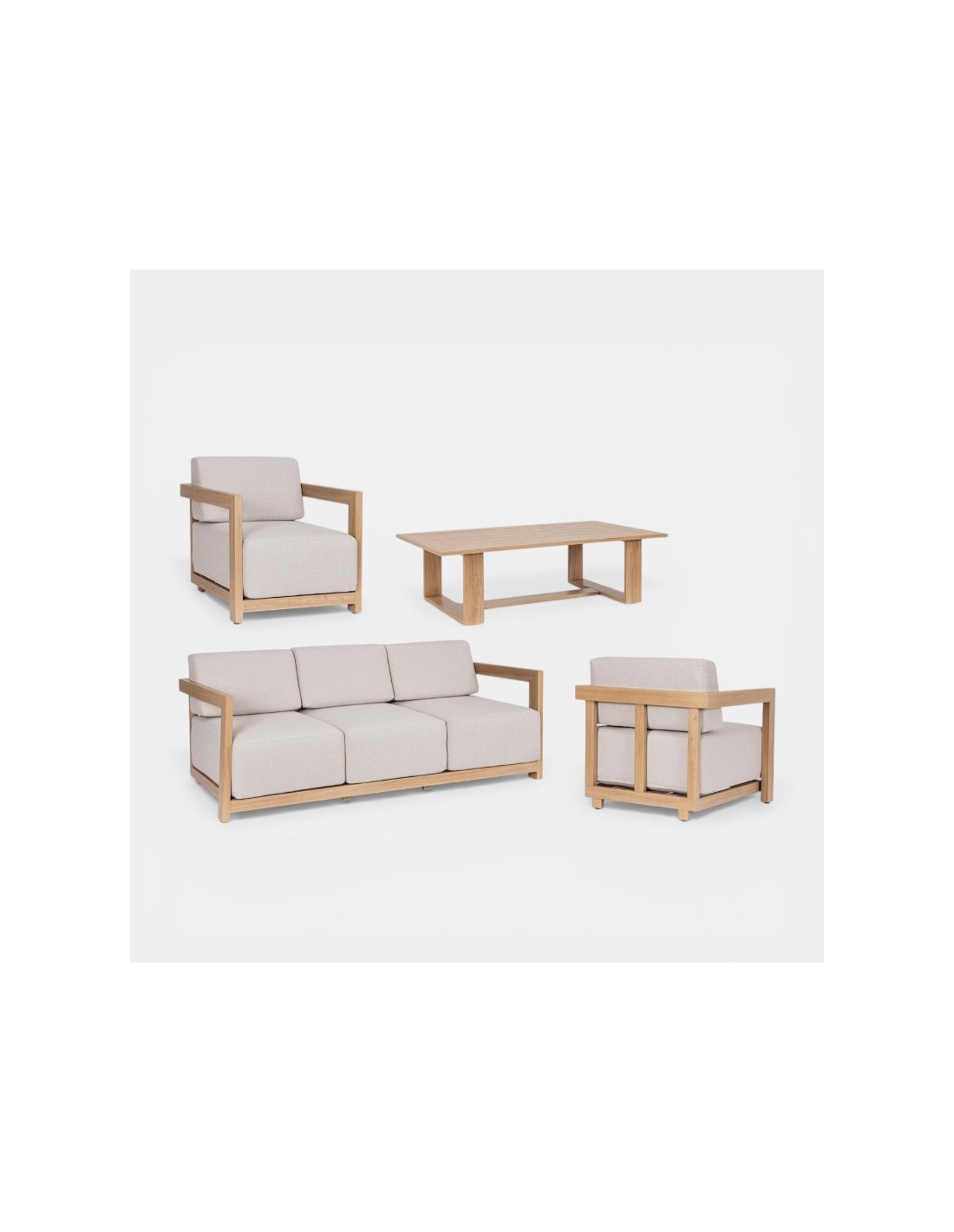 El Set lounge NOVA terrazza collection® está diseñado para aportar estilo, confort y durabilidad a cualquier espacio exterior. Su estructura de aluminio con acabado efecto madera ofrece la estética cálida de la madera natural con las ventajas de resistencia y bajo mantenimiento del aluminio.