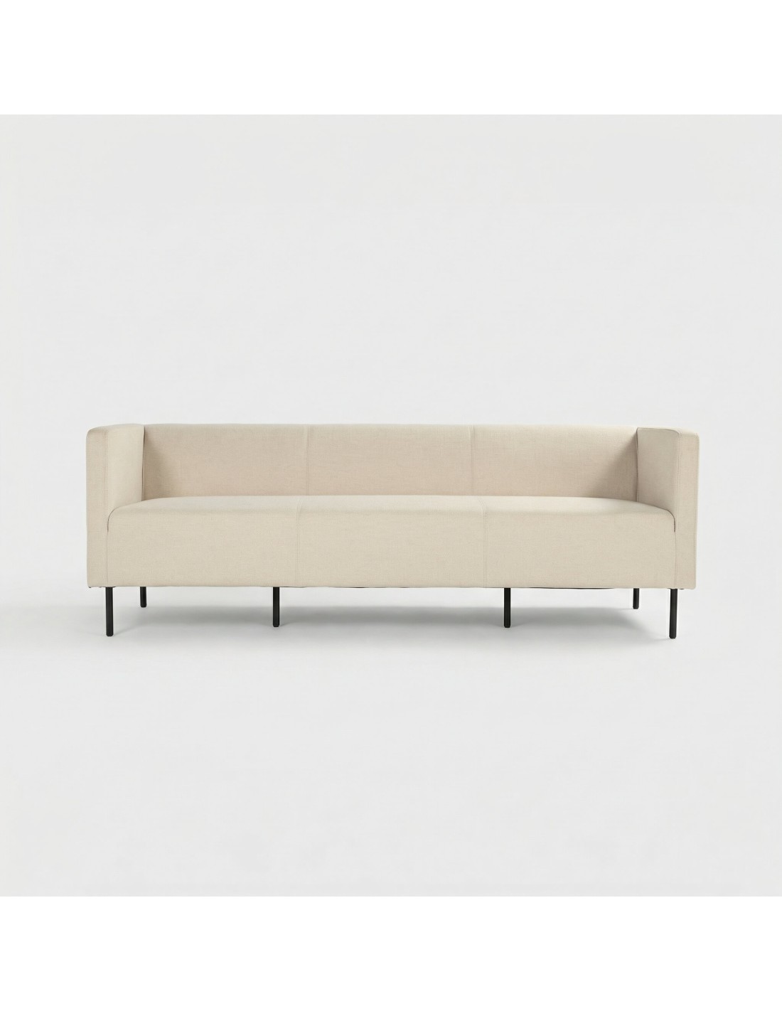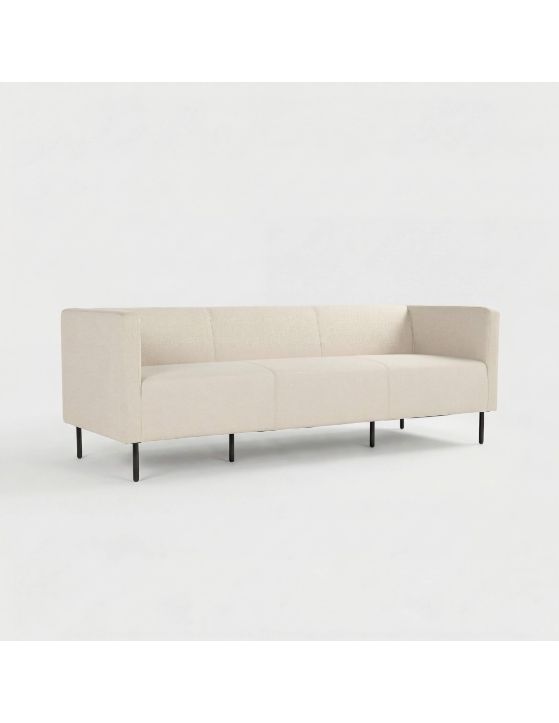 Las patas metálicas en color negro no solo aportan estabilidad, sino que también elevan visualmente la pieza, reforzando su carácter moderno. Gracias a su diseño funcional y elegante, el sofá ALBA es ideal para salones, oficinas, salas de espera o espacios contract.