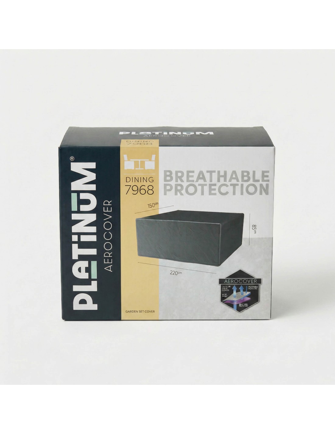 Protege eficazmente tus muebles de exterior con la funda Platinum® AeroCover tamaño L, diseñada para conjuntos de comedor de jardín rectangulares o cuadrados de mayor tamaño.