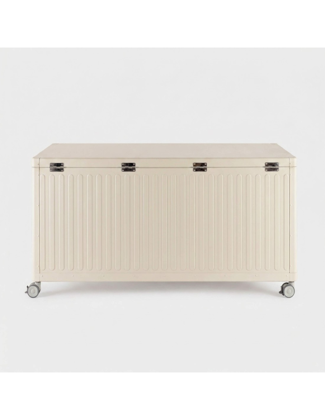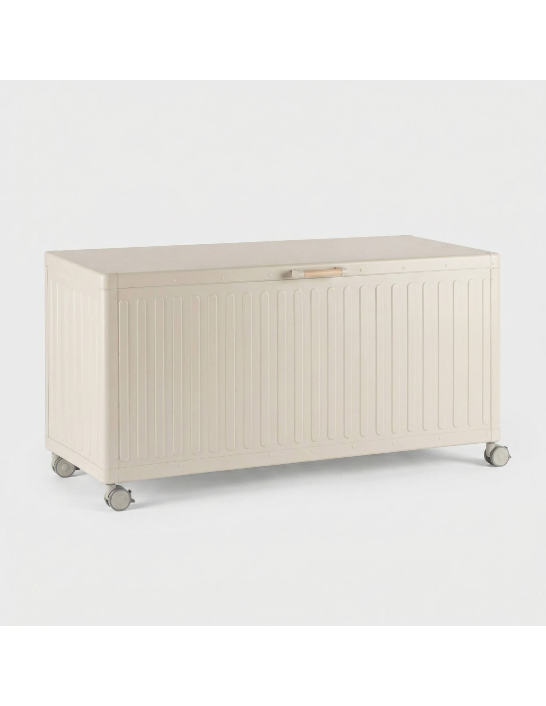 El baúl para exterior COS en tamaño M combina diseño contemporáneo y funcionalidad. Su acabado en color arena y su estructura de lamas verticales aportan un estilo elegante y versátil, perfecto para integrarse en cualquier espacio exterior.
