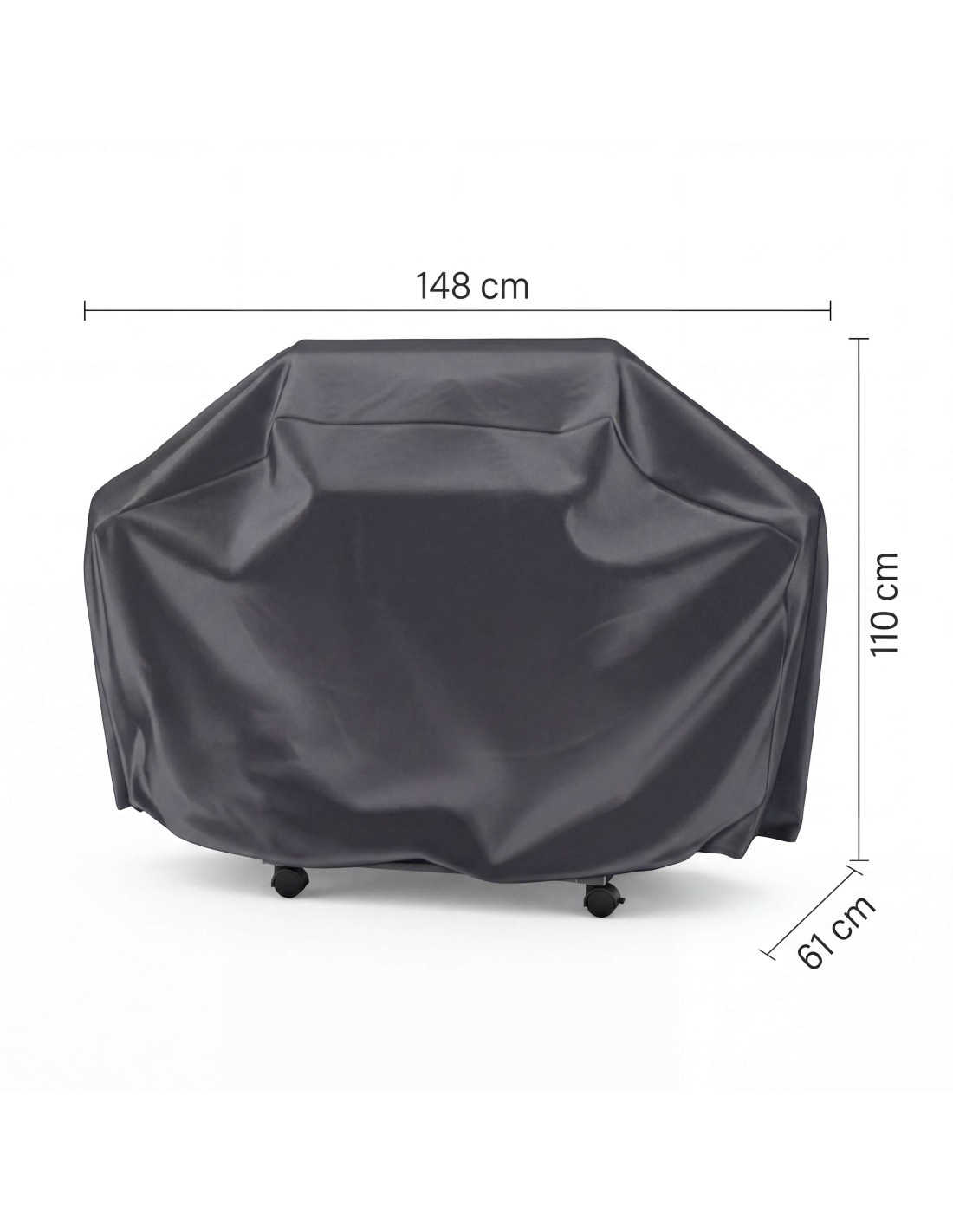 Es compatible con barbacoas de gas de tamaño medio-grande, especialmente aquellas con forma rectangular, tapa abatible y estructura con ruedas. Su diseño permite cubrir completamente la barbacoa, adaptándose a modelos con estantes laterales o superficies de apoyo, siempre que se ajusten a las dimensiones indicadas.