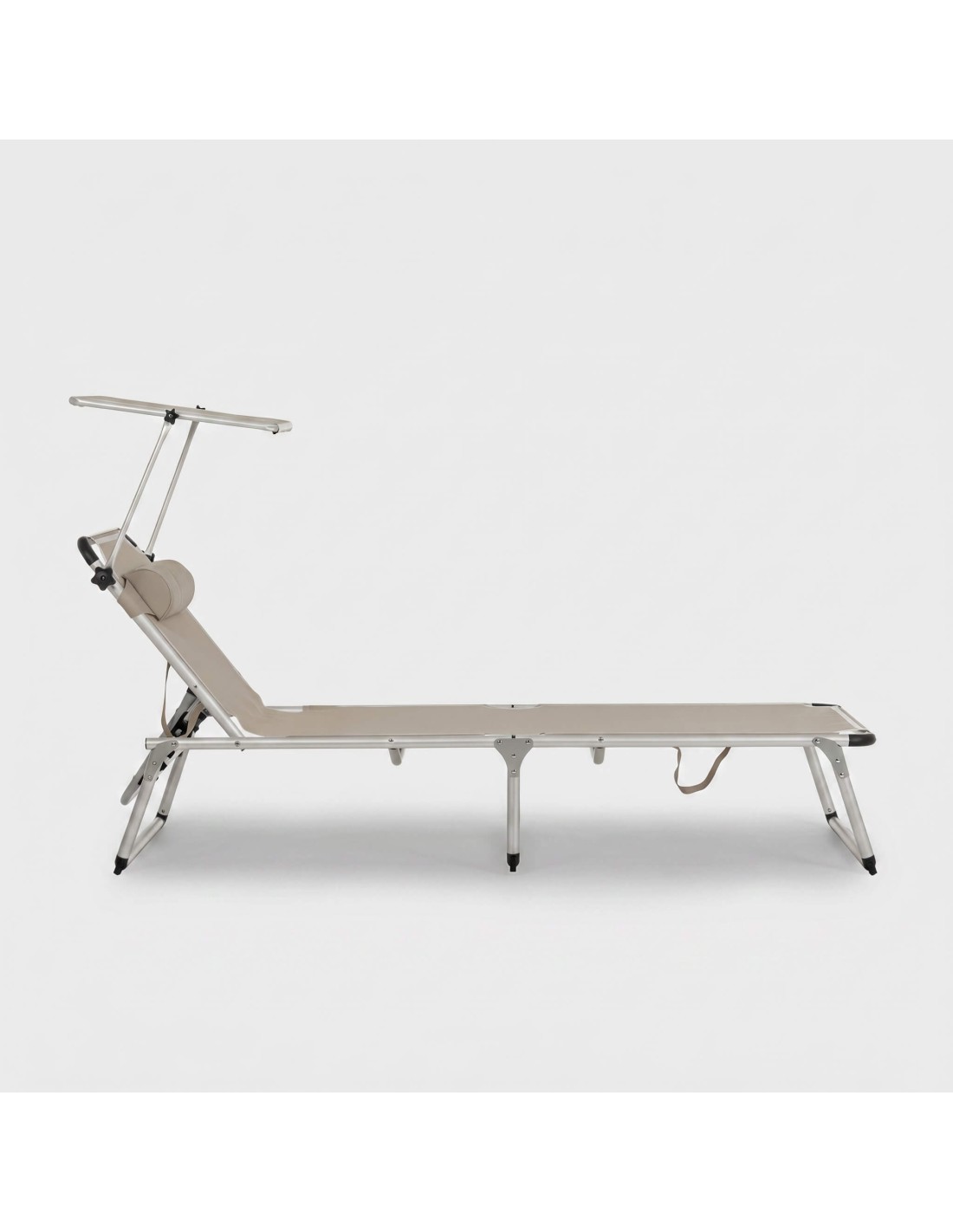 La tumbona plegable SOLIUM Beige con toldo de TERRAZZA COLLECTION® está diseñada para ofrecer el máximo confort y practicidad en cualquier espacio exterior. Su diseño funcional y ligero la convierte en la opción ideal para playa, piscina, jardín o camping.