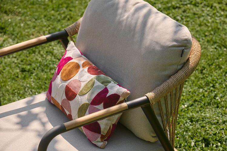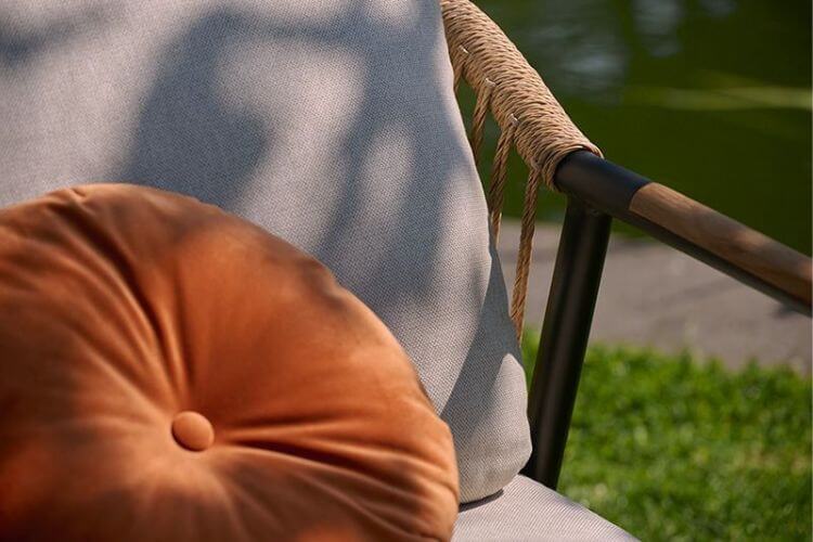 - Ratán sintético redondo apto para exterior como elemento ornamental de la estructura.