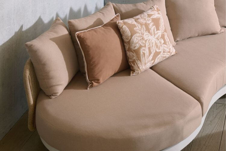 - Relleno y cojines Olefin Weatherready®: Fabricados con tecnología impermeable y de secado rápido, resisten lluvia, humedad y rayos UV. Siempre listos para usar, sin necesidad de retirarlos en días de mal tiempo.