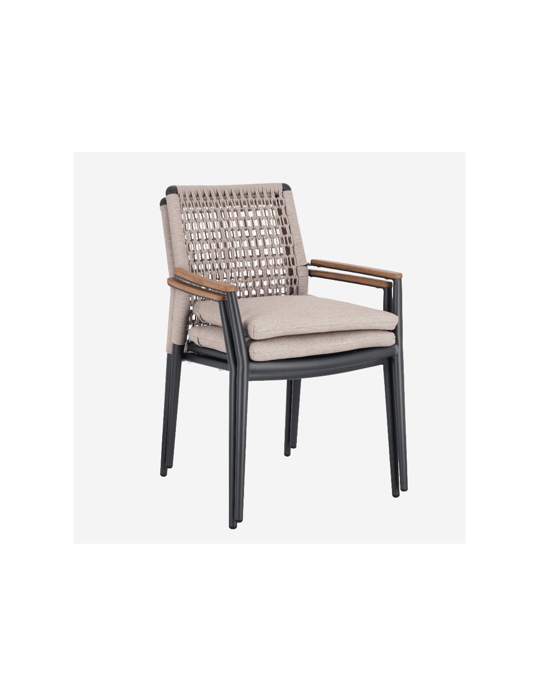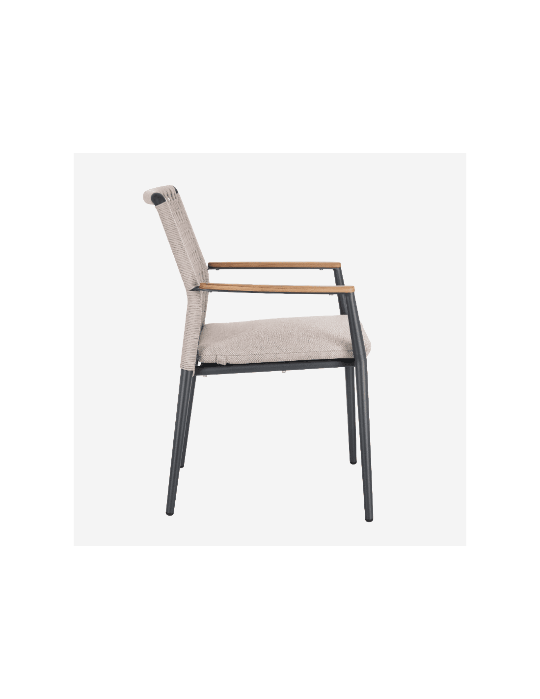 - Color antracita con reposabrazos en teca natural.