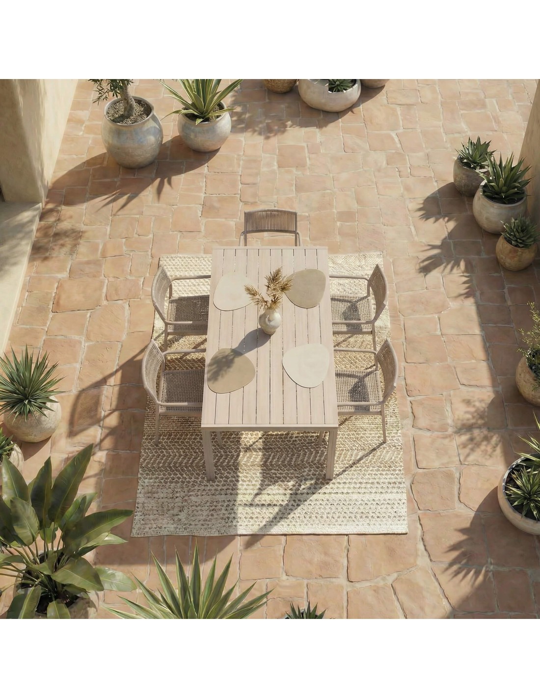 La mesa MENORCA 156x78 gris paloma TERRAZZA COLLECTION® es una mesa de exterior versátil, resistente y de fácil mantenimiento, ideal para terrazas urbanas, patios y jardines.